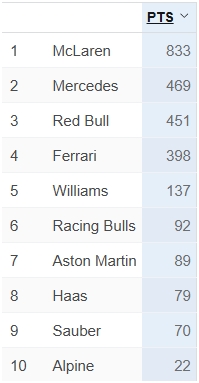 No entanto, a vitória não alterou o cenário do campeonato, já encaminhado pela consistência de Norris ao longo da temporada.